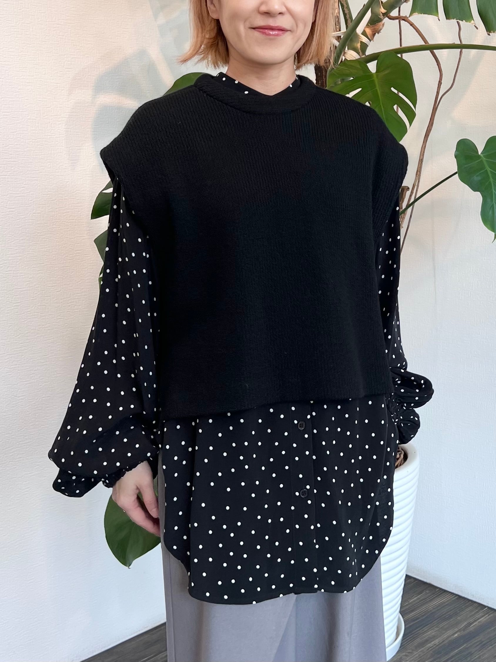 黒ドットシャツ