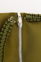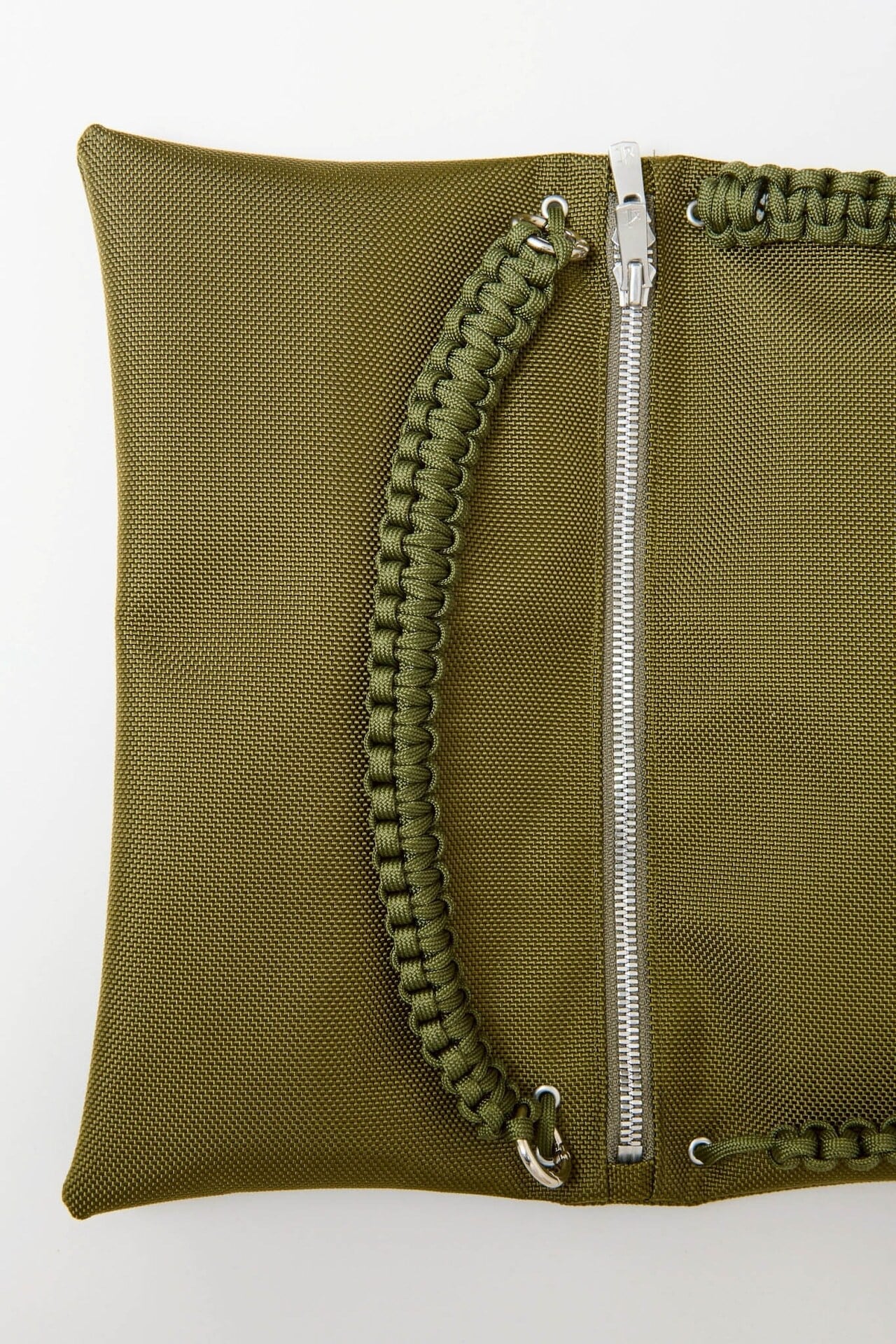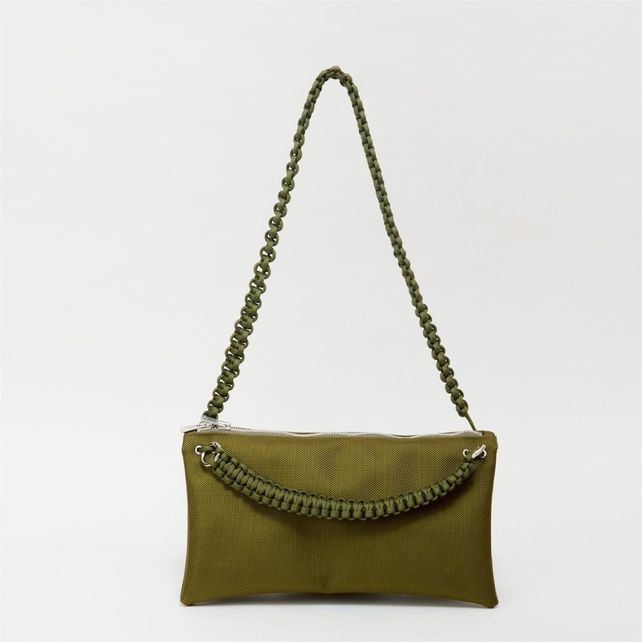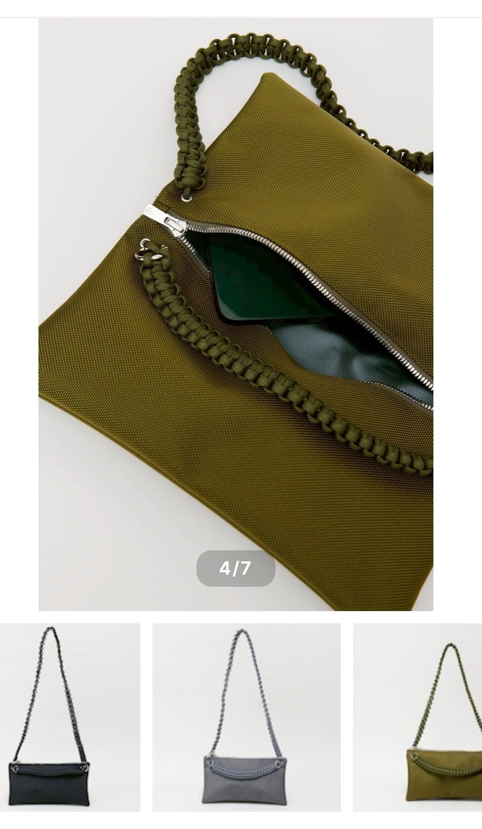 さらに、合計13mの紐をすべて手編みしたこだわりのハンドルや、自由な位置で開閉できるダブルファスナーを採用。二つ折りにすると中央に仕切りが生まれる構造で、デザイン性と優れた実用性を兼ね備えたバッグです。